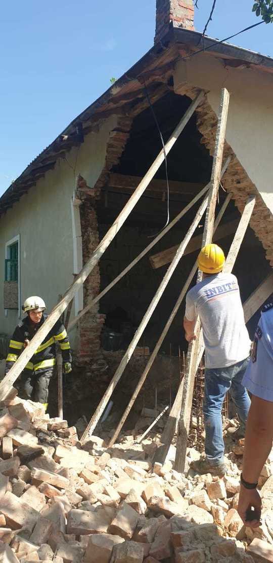Peste muncitorul aflat într-un șanț adânc de doi metri s-a prăbușit un zid din cărămidă, ce s-a prăbușit în timpul lucrărilor de renovare.