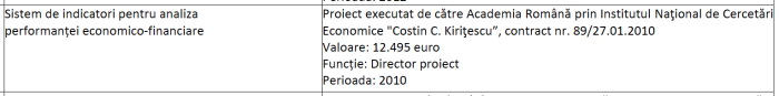 Așa cum se observă din obiectul contractului, tema de cercetare a fost analiza dinamicii și structurii activelor Poștei Române, analiza dinamicii și structurii capitalurilor, analiza corelației dintre structuri și capitaluri, analiza veniturilor realizate și analiza rentabilității activității, adică o simplă folosire, în dinamică, a indicatorilor pe care deja Poșta Română îi avea, și mai mult, trebuiau deja analizați de propriul deparament de ,,bugete și analize economice”.