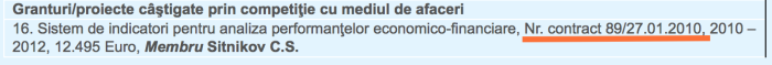 Ca în cazul oricărui contract trucat, el este semnat în mod nenatural mai întâi de executant (Academia Română – Centrul de Informare și Documentare Economică), în 27 ianuarie 2010, în aceeași zi în care a depus oferta și care nu avea cum să fie evaluată. Abia apoi este semnat de cel care l-a inițiat (Poșta Română care a comandat contractul și care se presupune că l-a originat și trebuia să îl trimită ea spre semnare, semnează abia în 29 ianuarie 2010). În cazul unui contract netrucat, ar fi trebuit să fie vice-versa: contractul e redactat și semnat de beneficiar (care comandă) care trece în contract termenii (acceptați ai ofertei) și abia apoi semnat de executant. Semnăturile celor 3 aflați în conflict de interese fiind membri în Asociația lui Marcu cu sediul pus la dispoziție de Valeriu Ioan-Franc, pe același document, sunt dovada conflictului de interese.