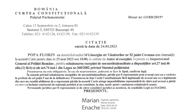• 23.05.2023 ora 10:00, interviul.