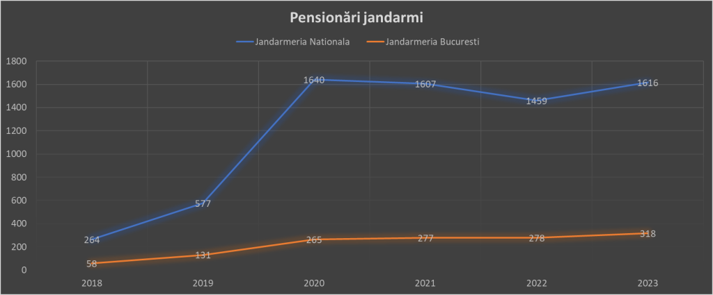 La fel ca în Poliția Română sau Pompieri, și la Jandarmi se constată că cele mai multe pensionări din anul 2023 se înregistrează în luna decembrie, concluzia fiind clară: oamenii au așteptat până în ultimul moment atingerea plafonului stabilit de Legea 153/2017, fiind clar dispuși să mai rămână. Au plecat în masă, după ce s-au convins că Ciolacu minte de îngheață apele, interesați să prindă indexarea din anul 2024.