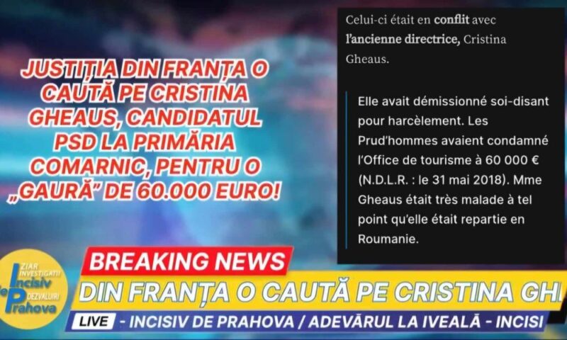 Justitia din Franta o cauta pe Cristina Gheaus pentru o „gaura” de 60.000 euro! /Candidatul PSD la Primaria Comarnic, a ieșit la rampa și … s-a murdărit la gură cu minciuni! – Ziarul Incisiv de Prahova