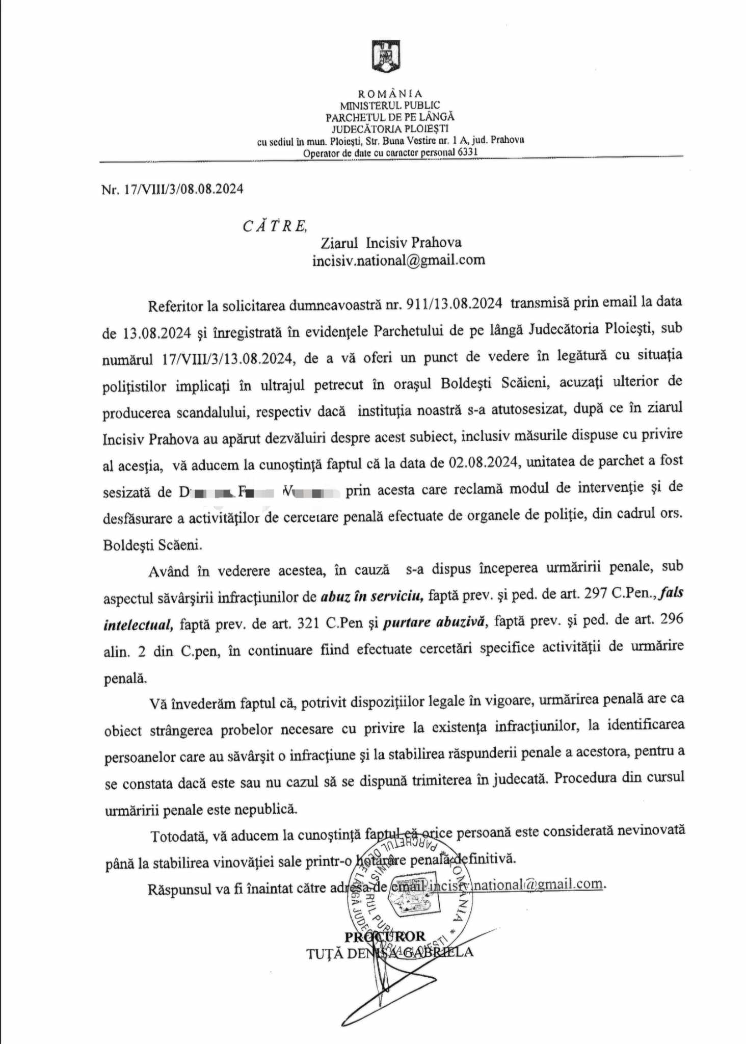 Abuzuri în uniformă: Tăcerea complice a IPJ Prahova în cazul polițiștilor din Boldesti Scaieni