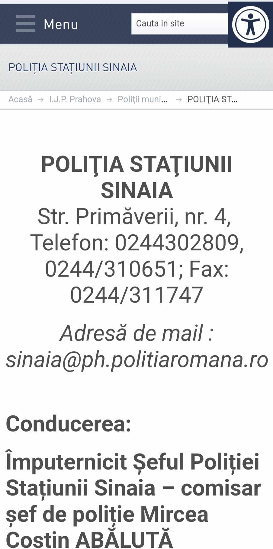 Nu ne mai miră absolut nimic sub această comandă a IPJ Prahova, nici măcar faptul că pe site-ul oficial al IPJ Prahova la șefia Poliției Sinaia este trecut oficial ca fiind comandant altcineva și nu controversatul Barbu Constantin, ci comisarul șef de poliție Mircea Costin Abaluta. Asta este siguranța și încrederea oferită de IPJ Prahova sub comanda lui Ginel Preda și aceasta este încrederea Ministerului Afacerilor Interne oferită de tandemul toxic Miritescu – Ginel Preda?