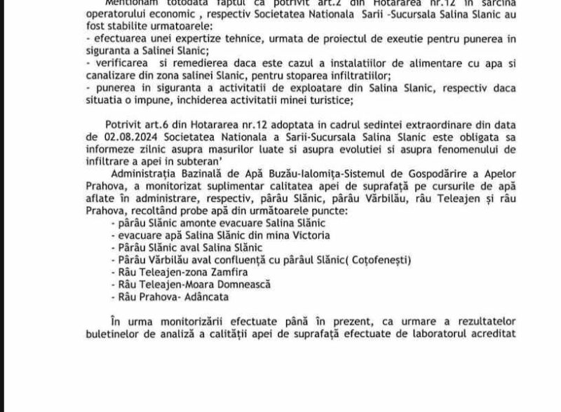 Acest incident subliniază o nevoie urgentă de responsabilitate și acțiuni decisive din partea autorităților pentru rectificarea situației și protejarea comunității afectate, iar tacerea complice a Inspectoratului de Poliție Județean Prahova nu face decât să amplifice suspiciunile legate de atitudinea pasivă față de criza ecologică care afectează Slănic Prahova. Vom reveni. (Cristina T.).