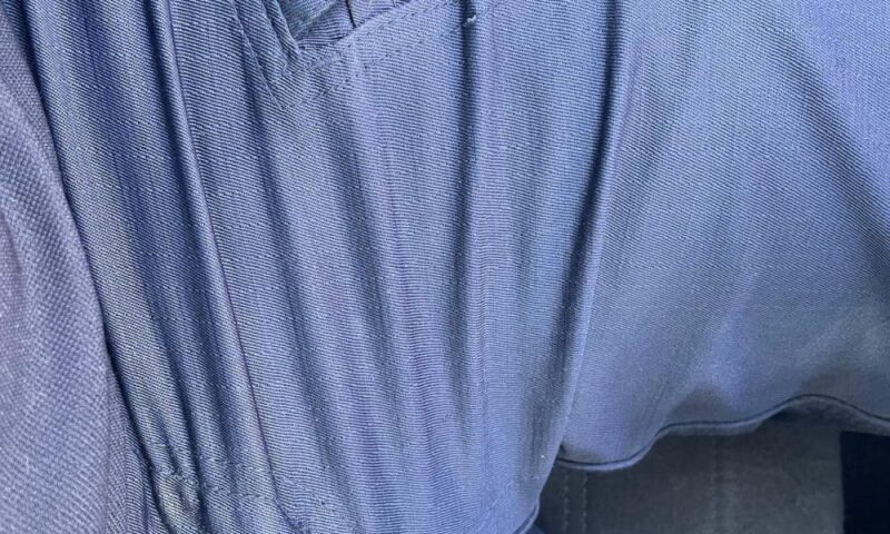 Privește haina din profil, mergi câțiva pași și observă dacă volumul te însoțește firesc sau pare că ajunge în fața ta înaintea siluetei.