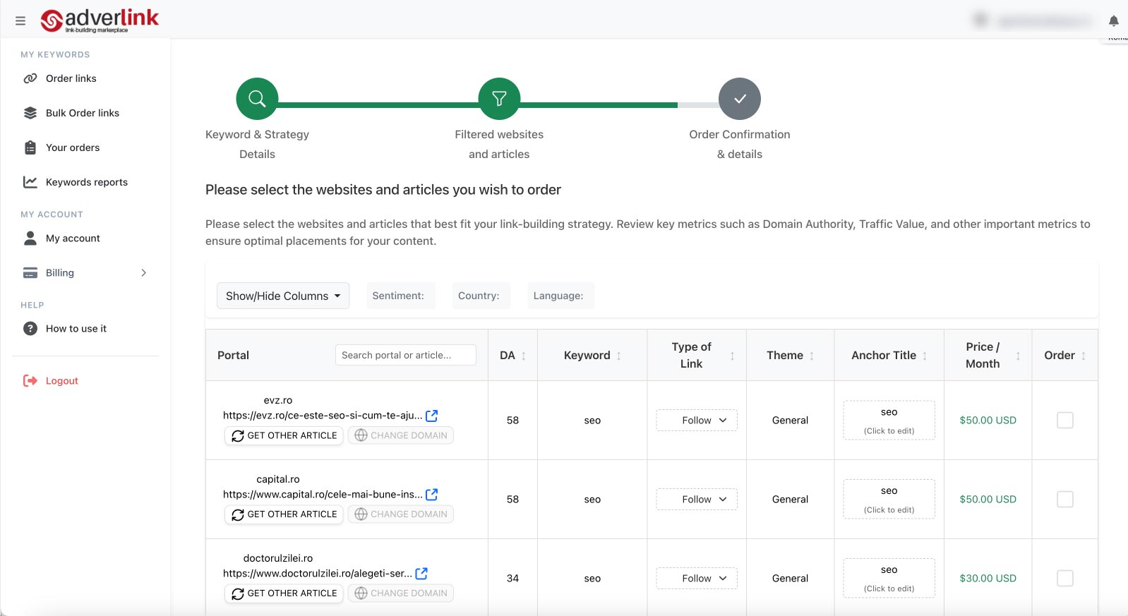 Advertiserii vor selecta site-ul tău pentru plasarea linkurilor. Ai opțiunea de a aproba sau respinge ofertele primite în funcție de relevanță și remunerație.