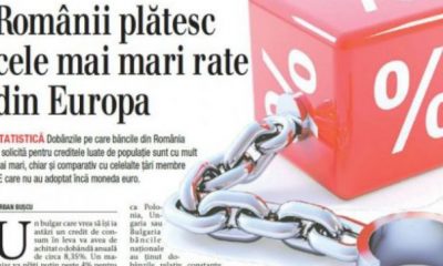 Dobânzile pe care băncile din România le solicită pentru creditele luate de populație sunt cu mult mai mari, chiar și comparativ cu celelalte țări membre UE...